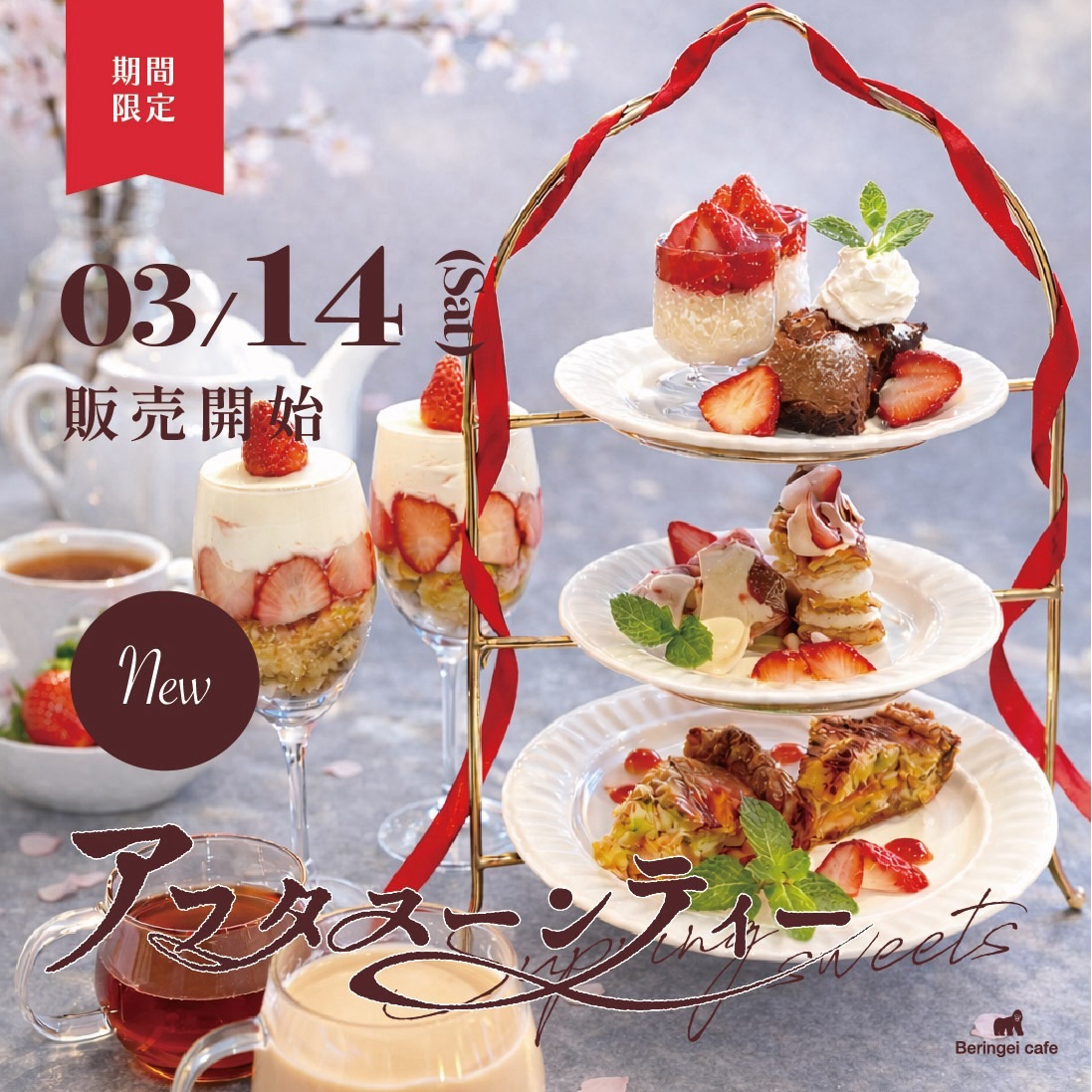 提供開始提供開始 【〜春薫る〜完熟いちごのアフタヌーンティー】 こんにちは、Beringeicafeです 大好評の苺のアフタヌーンティーが3/14よりスタートしました お店でひとつひとつ手作りされたキッシュやミルフィーユパイも新 […]
